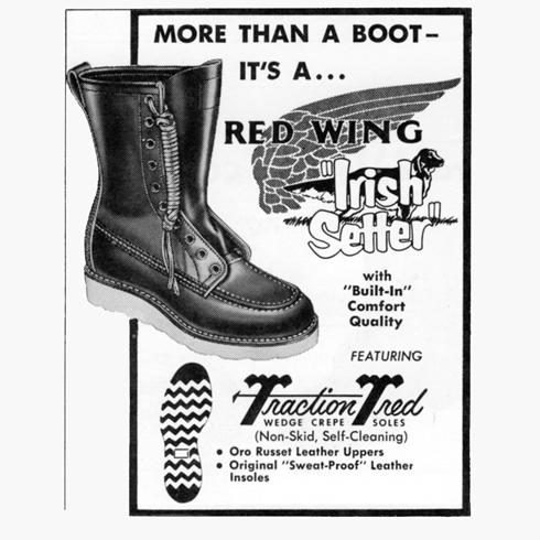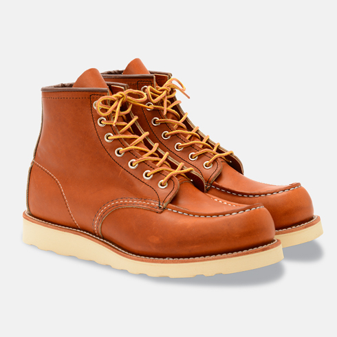 Moc Toe støvlen stammer fra 1950’erne og blev oprindeligt udviklet til farmere og jægere, der tilbragte det meste af deres dag udendørs i våde og kolde omgivelser. Den karakteristiske Traction Tred-sål gjorde den hurtigt populær blandt jægere, fordi den både var komfortabel og mere støjsvag end mange andre såler. Oprindeligt blev modellen kaldt Irish Setter, da læderets varme, rødlige farve mindede om hunderacen af samme navn. Den farve, der i dag kommer tættest på originalen, er Oro Legacy. Den oprindelige læderleverandør gik senere konkurs, og efter mange forsøg på at finde en værdig erstatning har Red Wing nu udviklet en version, som de selv mener ligger tættest på de oprindelige støvlers udtryk og kvalitet.