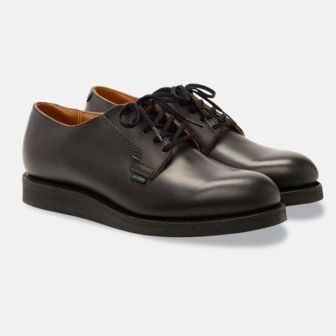 Resultatet blev en enkel og funktionel sko med et tidløst design, som stadig holder i dag. Den er fremstillet i Black Chaparral-læder, der har en glat overflade med en let struktur, hvilket giver både et elegant look og god slidstyrke. Den sorte crepe-sål bidrager med høj komfort og stødabsorbering, samtidig med at den giver et mere afdæmpet og diskret udtryk. Kombinationen af holdbarhed, komfort og klassisk stil har gjort Postman-modellen til en favorit langt ud over dens oprindelige formål.